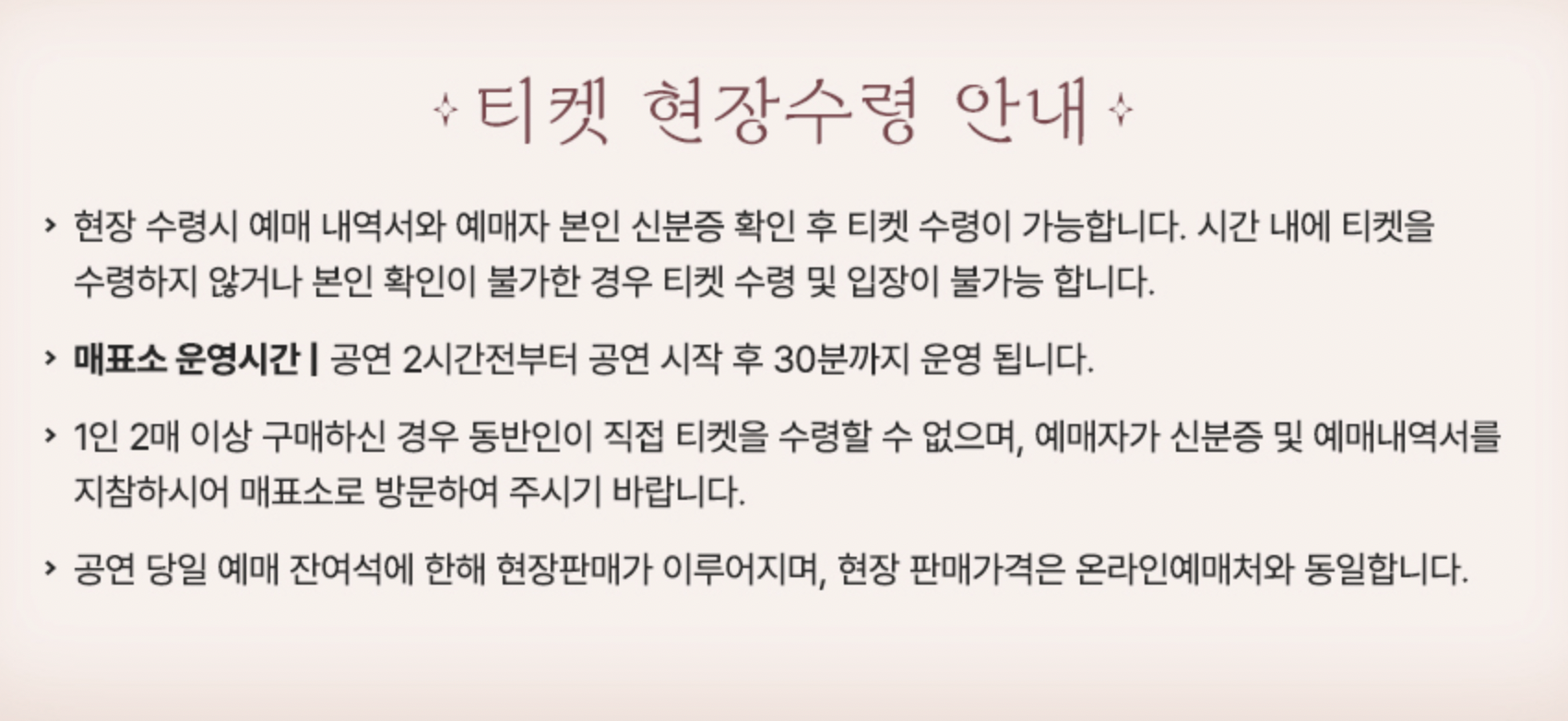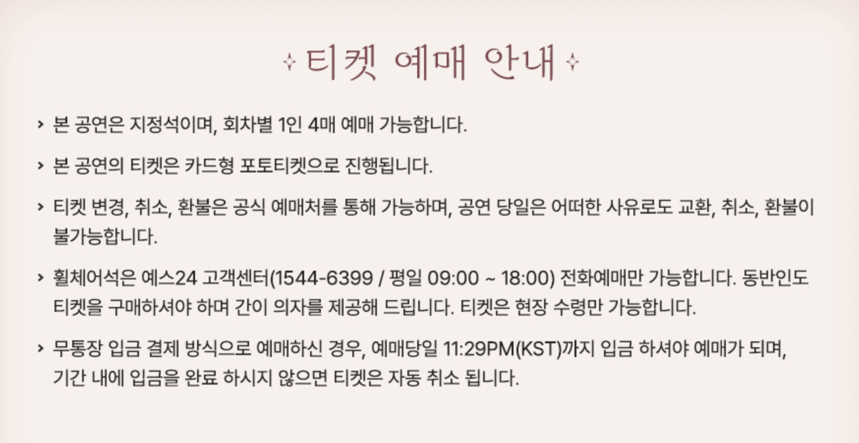 - 예매 방식: 온라인 단독 예매